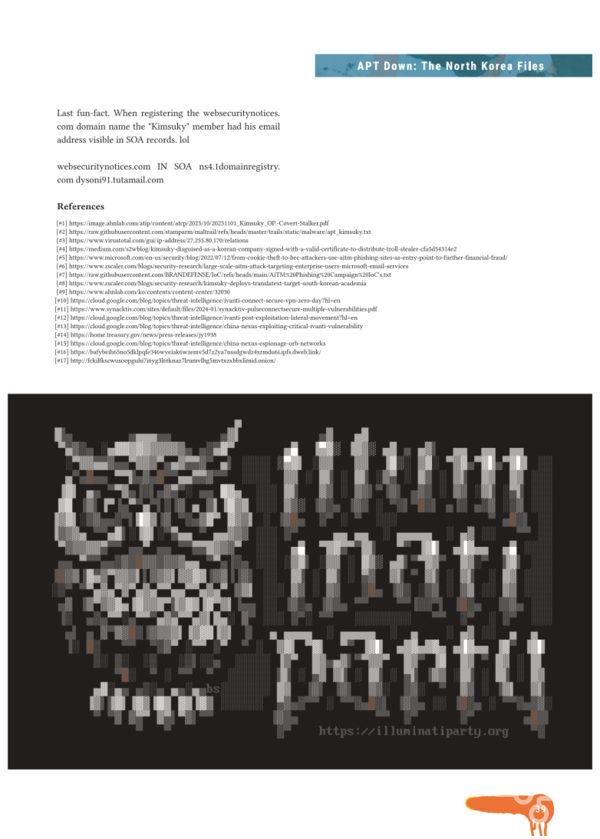 - 'illuminatiparty.org' 관련 이스터 에그: 해커 커뮤니티 내 존재감 과시 목적으로 추정