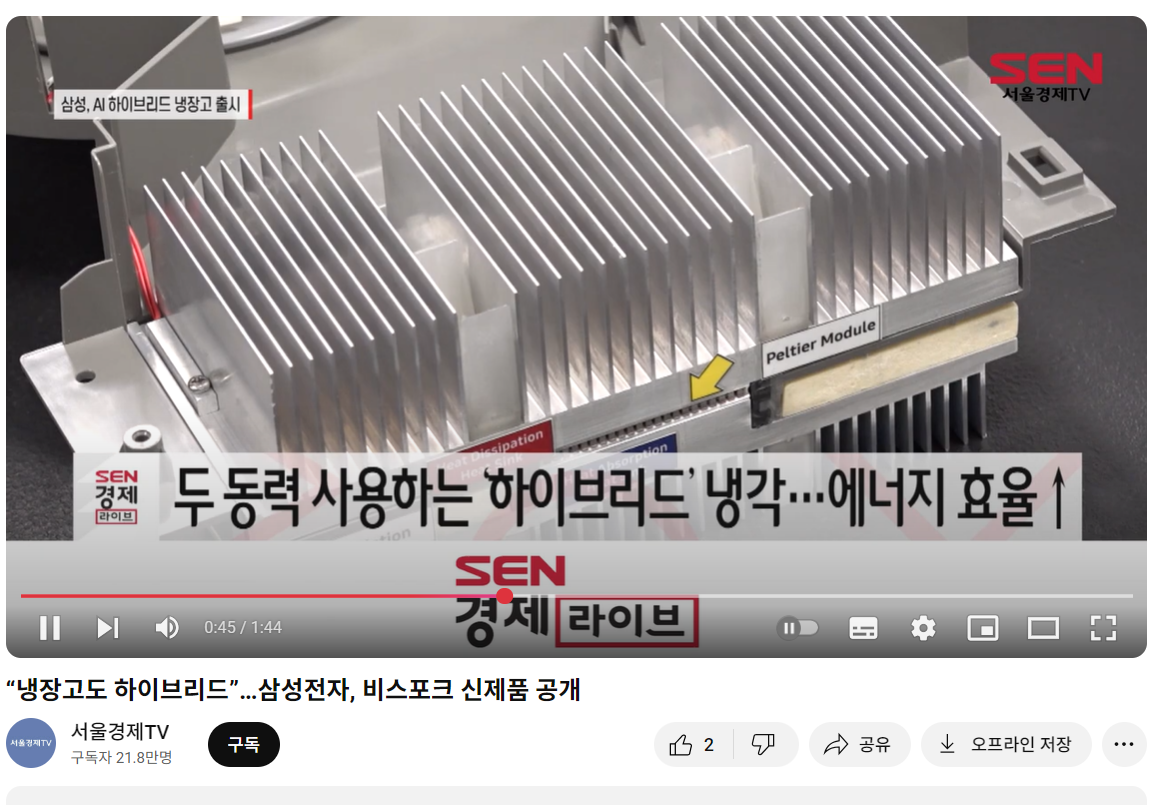 다른 가전 제조업체들도 펠티어 냉각 기술에 대한 관심이 높아질 것으로 예상됩니다.