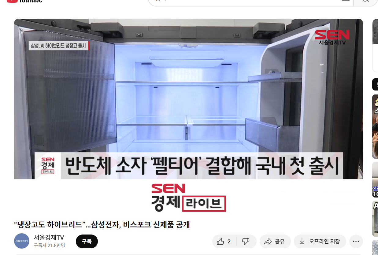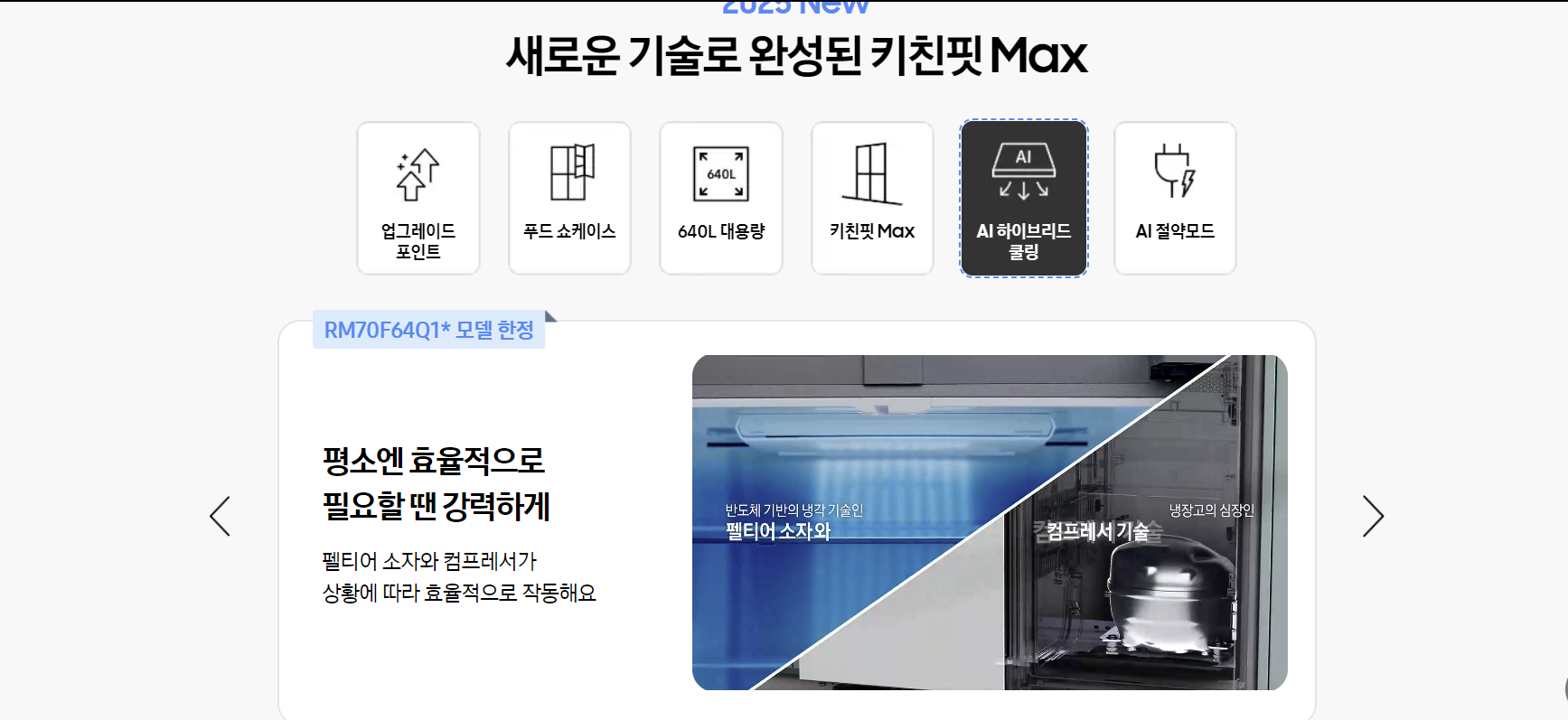 펠티어 소자와 컴프레서기술이 혼합된 삼성 냉장고