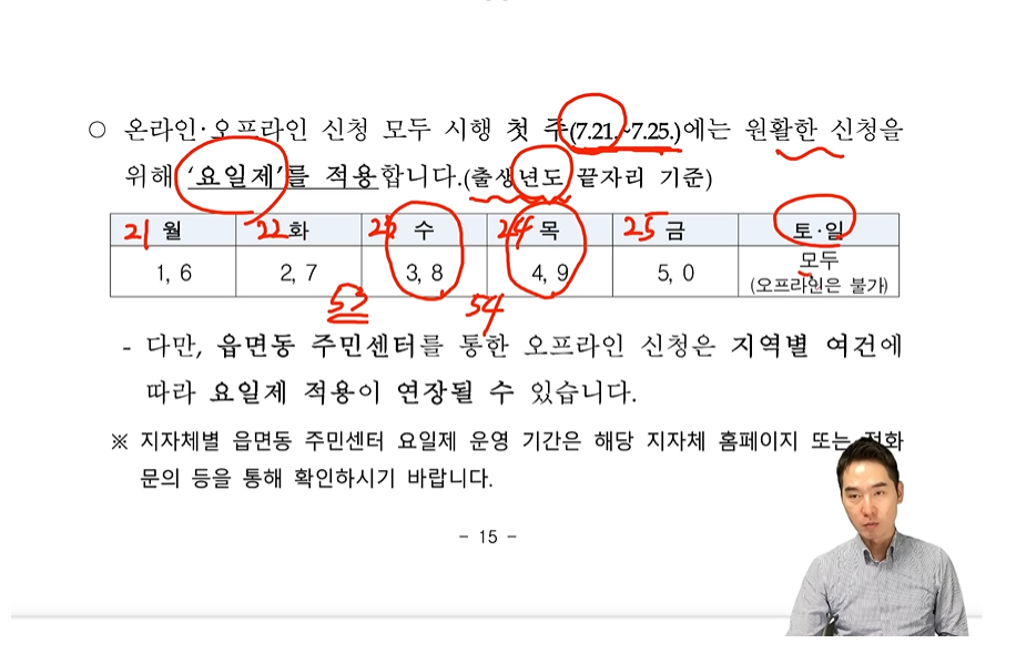 - 오프라인 신청: 읍면동 주민센터 방문 신청