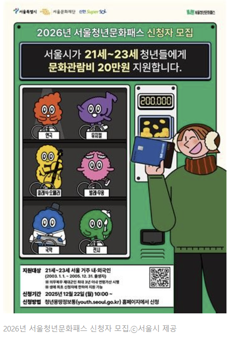 놓치면 연간 10만원 문화생활비가 날아갑니다! 서울시 청년이라면 누구나 받을 수 있는 서울청년문화패스를 90% 이상이 모르고 있어요. 지금 바로 5분 투자로 문화생활 혜택을 확인해보세요.