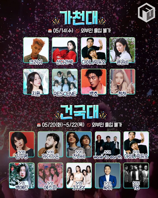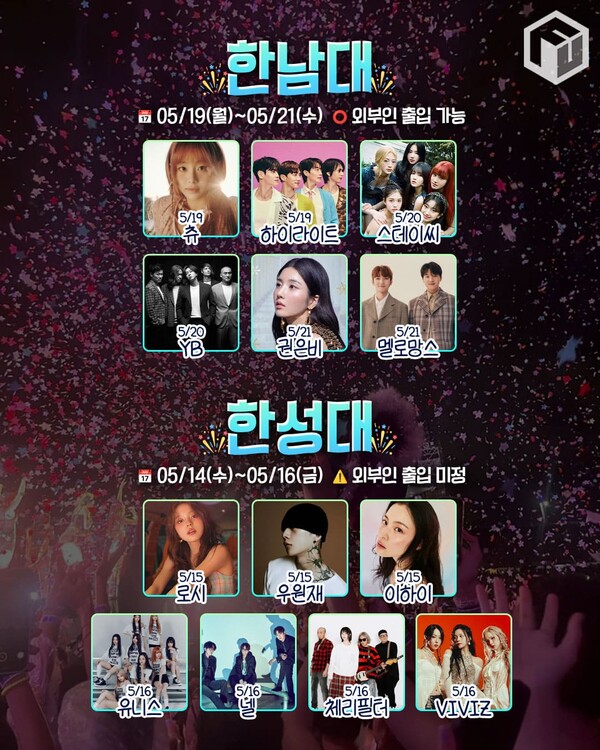 전북대 축제는 5월 21일부터 23일까지 3일간 펼쳐지며, 이영지, 권은비